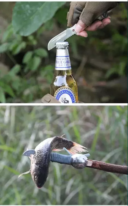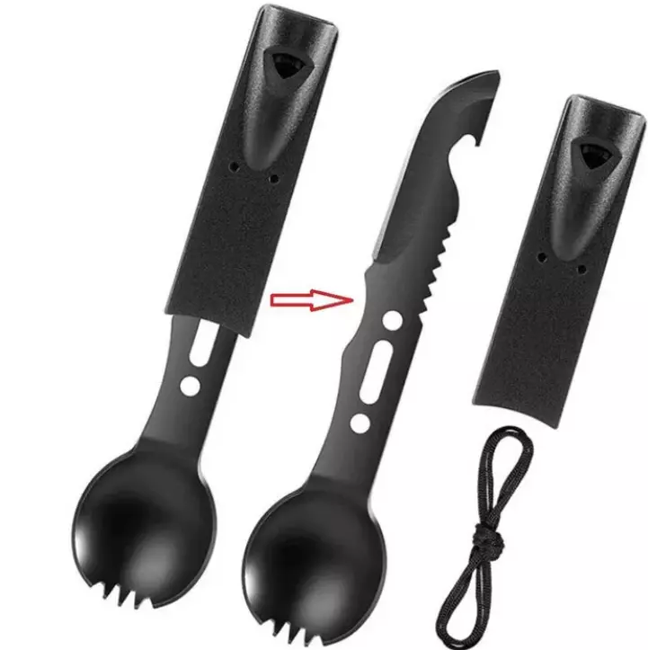 Функции: ложка, вилка, нож, открывалка для бутылок, консервный нож,